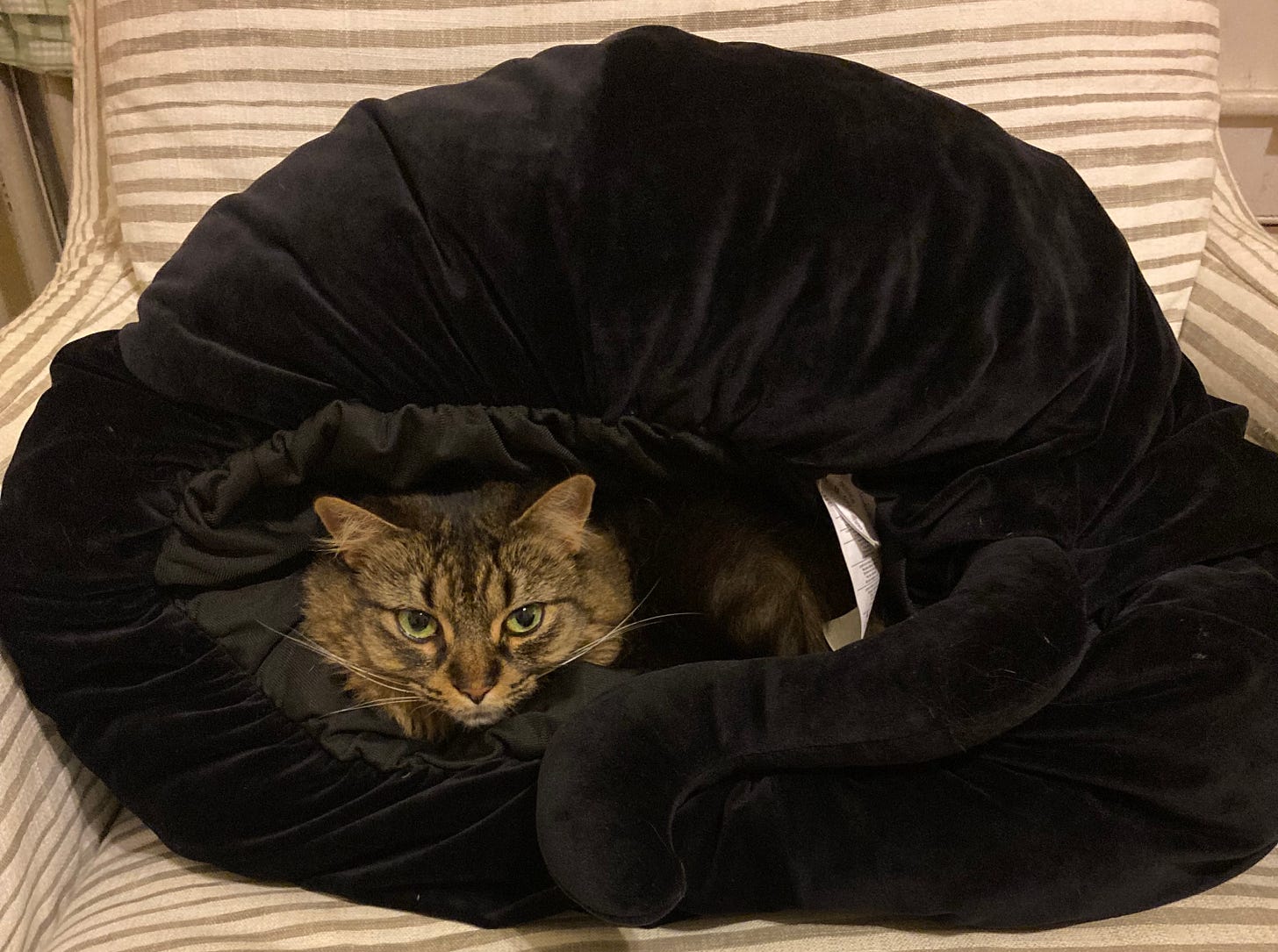 Dudes, my sabbatical is over. Sabbaticals for all! I would fight in that war. Fortunately, I return to wonderful colleagues & students & a damned decent college administration. I’m greedy for more life outside capitalism & also grateful for the time I had. I did not achieve my modest goals of finishing three books, taking up weightlifting, prevailing over the Tree of Heaven in the backyard & snaking the kitchen sink drain, but I feel my cup to have been at least partially refilled. Below, please find a picture of a cat in a catsuit: